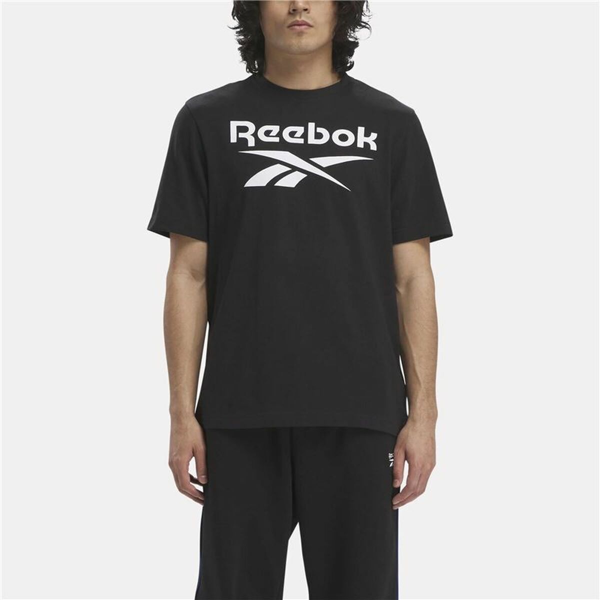 Men’s Short Sleeve T-Shirt Reebok Identity Big Stacked Logo Black S and other